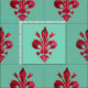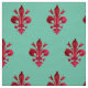 RED FLEUR DE LIS IN GREEN Floral Pattern Fabric