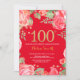Red Floral 100th Birthday Gold Glitter and Red Invitation