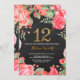 Red Floral 12th Birthday Invitation Gold Glitter