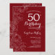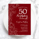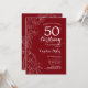 Red White Floral 50th Birthday Party Invitation. Minimalist modern design featuring botanical outline drawing accents and typography script font. Simple trendy invite card perfect for a stylish female bday celebration. Can be customized to any age. Printed Zazzle invitations or instant download digital printable template.