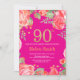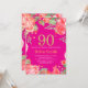 Red Floral 90th Birthday Gold Glitter and Hot Pink Invitation