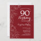 Red Floral 90th Birthday Party Invitation