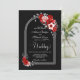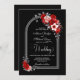 Invite your friends and loved ones to your wedding with this modern red floral black and white arch wedding invitation.