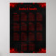 Red Floral & Black 14 Wedding Tables Seating Chart