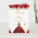 This elegant and glamorous birthday thank you card features a beautiful princess with blonde hair and fair skin in a red ball gown. The text combines handwritten script and modern sans serif fonts for a classy and sophisticated look. The floral arrangements, butterflies and gold confetti create the perfect blend of rustic and chic.