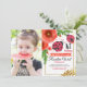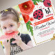 Red Floral Ladybug Watercolour 1st Birthday Photo Invitation