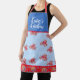 Red Floral Shabby Chic Blue Gingham Customisable Apron