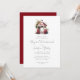 This romantic wedding invitation features a watercolor gazebo decorated with red flowers. Personalise it with the names of the bride and groom in charcoal grey handwriting script and the remaining text in serif font. The back of the card is a coordinating shade of burgundy red. Ideal for an outdoor spring, summer or fall wedding.