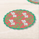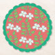 Bright, cheerful, and perfect for any celebration, this floral paper coaster features hand-drawn white blossoms and lively green leaves arranged over a bold red background. A coordinating green rim adds a fun, modern touch that makes the design pop.