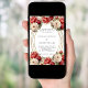 A white background decorated with red and white roses, florals. A faux gold oval frame. Personalise and add your names and details.