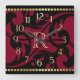 Red Flourish Design Gold Border with Monogram Square Wall Clock