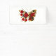 Red peacock eyed flower butterfly with red textured wing, decorated with composition of red, artistically painted roses with golden stems and leaves on white background.