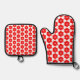 Floral oven mitt and pot holder. The oven mitt is designed to protect the wearer's hands and forearms from heat, typically when handling hot cookware or bakeware. It's a kitchen essential for anyone who bakes, cooks, or frequently uses an oven. The potholder is used to cover the hand when holding hot kitchen cooking equipment, like pots and pans. You can customise this oven mitt and potholder with any text of your choice. Should you require any help with customising then contact us through the message link on this page. Red flower design oven mitt and potholder