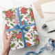 Red flower green leaf Christmas theme pattern Wrapping Paper