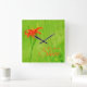 Red Flower "It's time to shine" Square Wall Clock