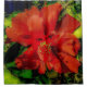 This Shower Curtain brings us the power of a richly bright red flower. In this original photograph by ZoeSPEAK, the red hibiscus flower is soaking up the sunshine, surrounded by the spring green leaves of the bush. The flower petals ripple around yellow dots in the centre, making a rich, warm image.