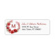 This return address label has a beautiful watercolor image of a bright red floral wreath with your monogram at the centre. Your name and address are in matching red and black at the right of the image.