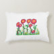 Red-flowered pillow hand-painted with yellow centres and green leaves
