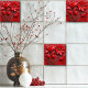 Beautiful solid red shiny ceramic tile with beautiful red Tulips and Primrose