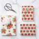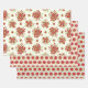 These floral wrapping paper sheets features bouquets of red flowers with honeydew green leaves and floral stripes with small dots patterns. There three different patterns. It was designed for Spring and Summer gift wrap projects.