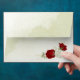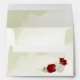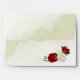 Beautiful wedding envelope featuring red and white flowers and green leaves