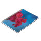 Red geranium on a blue background. The bright cover will lift your spirits and set you in a study or work mood.