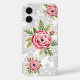 Red and pink flowers are scattered over a grey and white lacy looking background on this iPhone case. Beautiful, sweet, and feminine.