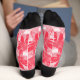 My partner loved it! It fits well and doesn’t come off after washing it. We love it! It’s great. When he wears it stretches a bit but you can still see the pics! It’s thin so don’t expect thick socks. Great though!