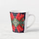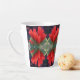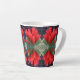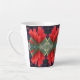 The colourful, original pattern of red flowers on this Latte Mug was created from an original photograph by ZoeSPEAK of an agave plant blooming in the garden. The vermilion red petals of the opening flowers stand out against the agave's soft bluish green, disc-shaped leaves and the dark background.
