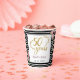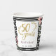 Elegant and chic 50th wedding anniversary paper cups. Celebrate your 50th anniversary in style with this stylish and trendy party napkin. Design details include watercolor red roses, black and white stripe background and gold faux glitter word art design that says "50 years".