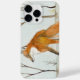 A tiny watercolor painting of a red fox out on a hunt in the snowscape of winter adorns this phone case!