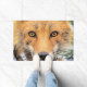 This wild animal eyes theme doormat is decorated with a red fox photo showing the animal's face, eyes, and expression. Throughout North America, red foxes are often associated with beauty, adaptability, intelligence, cunning, and skill.