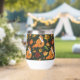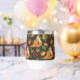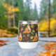 A red fox with pumpkins, acorns and autumn leaves in a backdrop of dark green