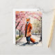 A red fox walks to work and stops to enjoy the view of the spring flowering trees in the city watercolor AI generated art