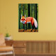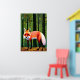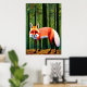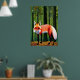 The red fox standing in the forest tress in the background. This is a AI generated art.
