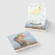 The coasters are gorgeous, a quality feel and heavy weight. They look like a precious archeological find. A rustic stone juxtaposed with a modern floral black and white print. I like the way the print goes slightly imperfect on the cut stone edges giving them a kind-of natural beauty.