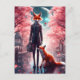 Red Fox Walking With a Brief Case Cherry Blossoms Postcard