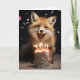 Celebrate with a burst of joy with this lively birthday card. Featured front and center is a delighted red fox, its eyes sparkling with excitement as it gazes at a white birthday cake adorned with red candles. The scene is alive with celebration, as confetti fills the air, adding to the festive atmosphere. The fox's vibrant red fur contrasts beautifully with the cake, creating a visual feast that's sure to delight the recipient. Inside the card, a blank space awaits your personal birthday wishes.