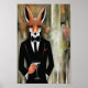 Handsome and stylish red fox wearing a tuxedo with a bow tie, holding a martini. Created using Wombo Dream. AI and artist collaboration.