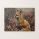 Red Fox with Pink Wildflowers Painting Jigsaw Puzzle