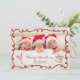 Red frame, Striped Family Photo Christmas Invitation