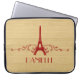 Elegant and chic French Flourish Laptop Sleeve featuring a faux woodgrain look background and an Eiffel Tower design in dark red adorned with cascades of stylish swirls. This girly and trendy design is easy to customise with the personalised text of your choosing. Click "Customise It" to find more personalisation options.