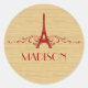 Elegant and chic French Flourish Stickers featuring a faux woodgrain look background and an Eiffel Tower design in dark red adorned with cascades of stylish swirls. This girly and trendy design is easy to customise with the personalised text of your choosing. Click "Customise It" to find more personalisation options.