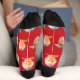 Funny personalised red 2 face photo crew socks for dads. To use a cutout of your son or daughter's face like in the example, the background must be transparent and the file format a png. You can download any mobile or computer app, or use the program named Canva or Photoshop.