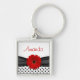 Red Gerbera Daisy Polka Dot Custom Name Keychain