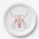 Red Ghost Dance Buffalo paper plates are for Native Americans, westerners, Western fans, Old West history buffs, those interested in shamanic rituals and ceremonies, skull collectors, those who admire the noble American buffalo, western weddings, and Native American weddings. Red Ghost Dance Buffalo is Steamy Raimon original art.
