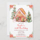 This elegant and festive birthday party invitation features a watercolor gingerbread house and beautiful red poinsettia flowers. The text combines handwritten script and sans serif fonts for a stylish and modern look. The snowman, decorated pine trees and holiday wreath add a festive touch. This is perfect for Christmas birthday parties.