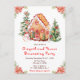 This elegant and festive gingerbread house decorating party invitation features a watercolor gingerbread house and beautiful red poinsettia flowers. The text combines handwritten script and sans serif fonts for a stylish and modern look. The snowman, decorated pine trees and holiday wreath add a festive touch. This is perfect for Christmas parties.
