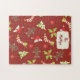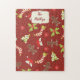 A puzzle meant to bring great delight, this Red Gingerbread Man Glee puzzle features a red background adorned with gingerbread men, red and white Santa Stockings, Christmas trees and other decor. Customise your name using the template.