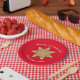 Cute gingerbread snowflake design on red background - personalised Christmas holiday tableware cocktail paper party plates